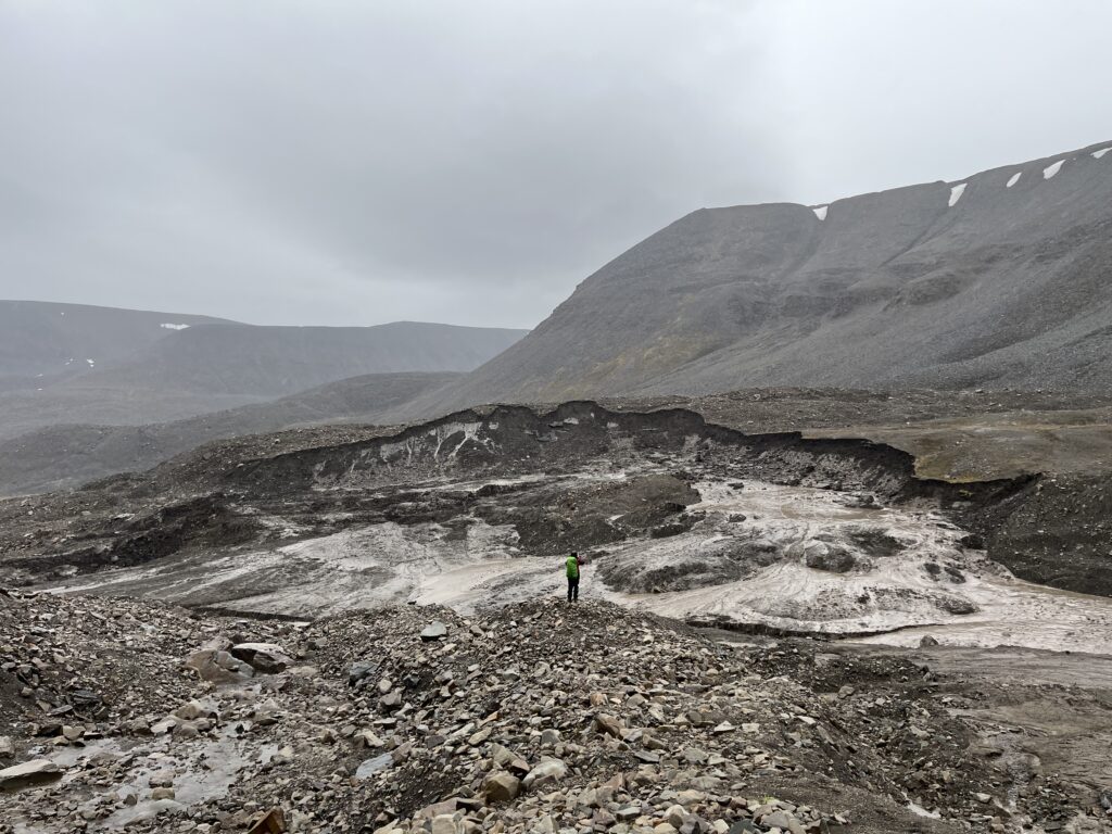 - 3 km of moraine terrain—this year was complicated by the development of retrogressive thaw slumps, forcing us to adjust our route. These shifts were a striking reminder of how dynamic recently deglaciated landscapes are.